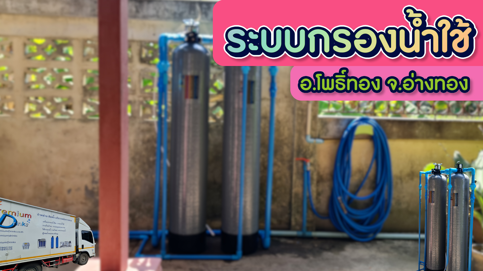 งานติดตั้งถังไฟเบอร์ ขนาดจุสารกรอง50ลิตร 2ใบ อ.โพธิ์ทอง จ.อ่างทอง
