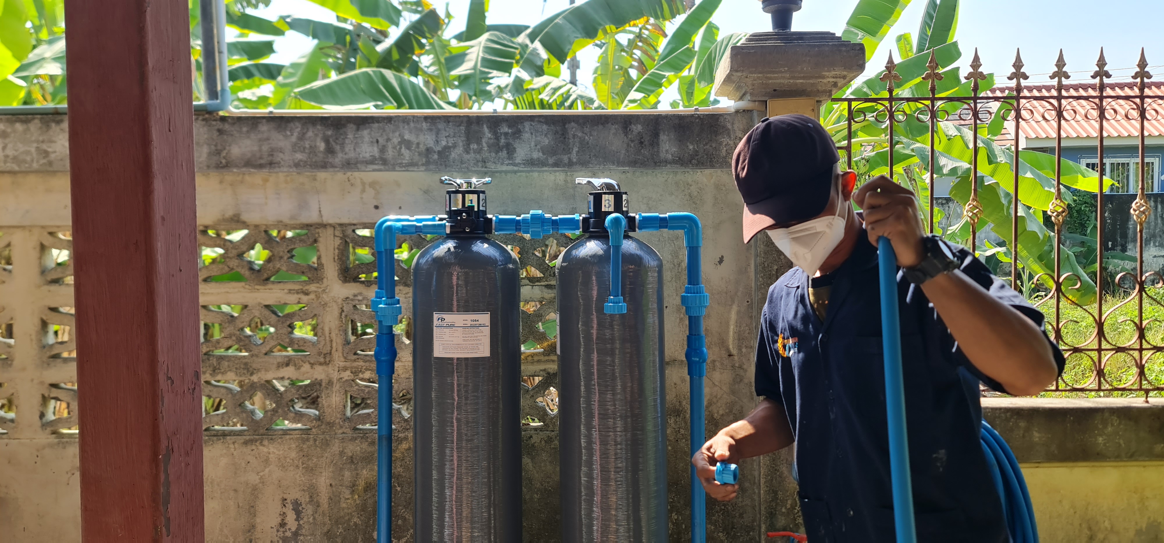 งานติดตั้งถังกรองน้ำใช้ ไฟเบอร์ (10 x 54)ขนาดถังจุสารกรอง 50 ลิตร จำนวน2 ถัง
